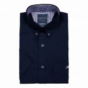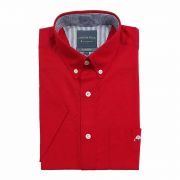 Camisa manga corta para caballero con bolsillo y botón en el cuello.