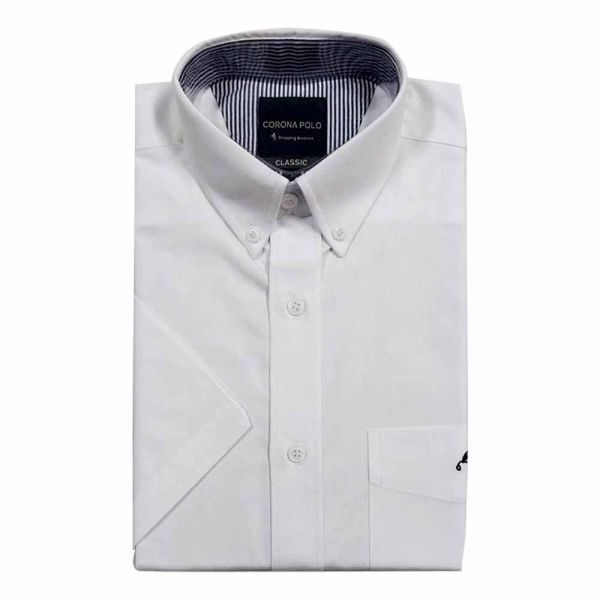 Camisa manga corta para caballero con bolsillo y botón en el cuello.
